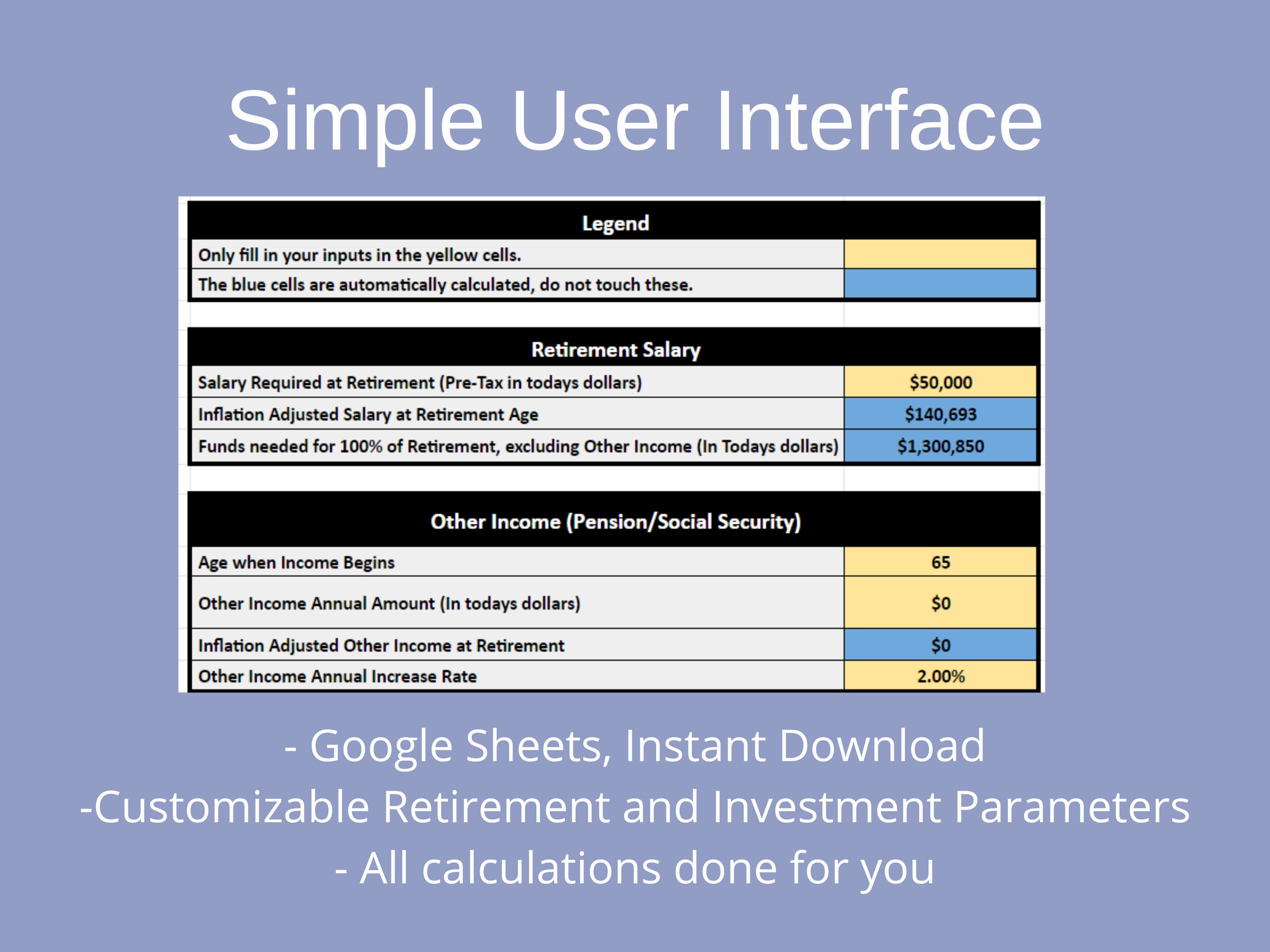 Buy Retirement Calculator Spreadsheet Fire Calculator Google Online In India Etsy